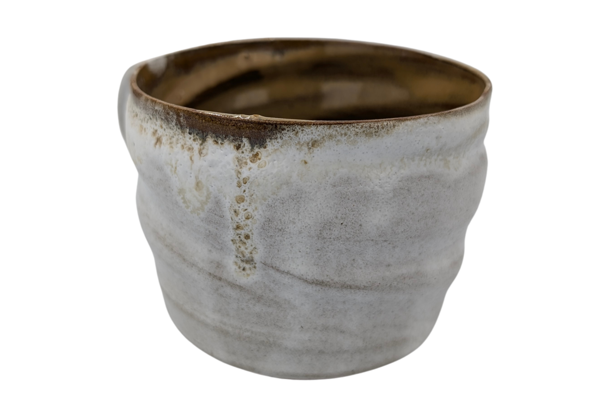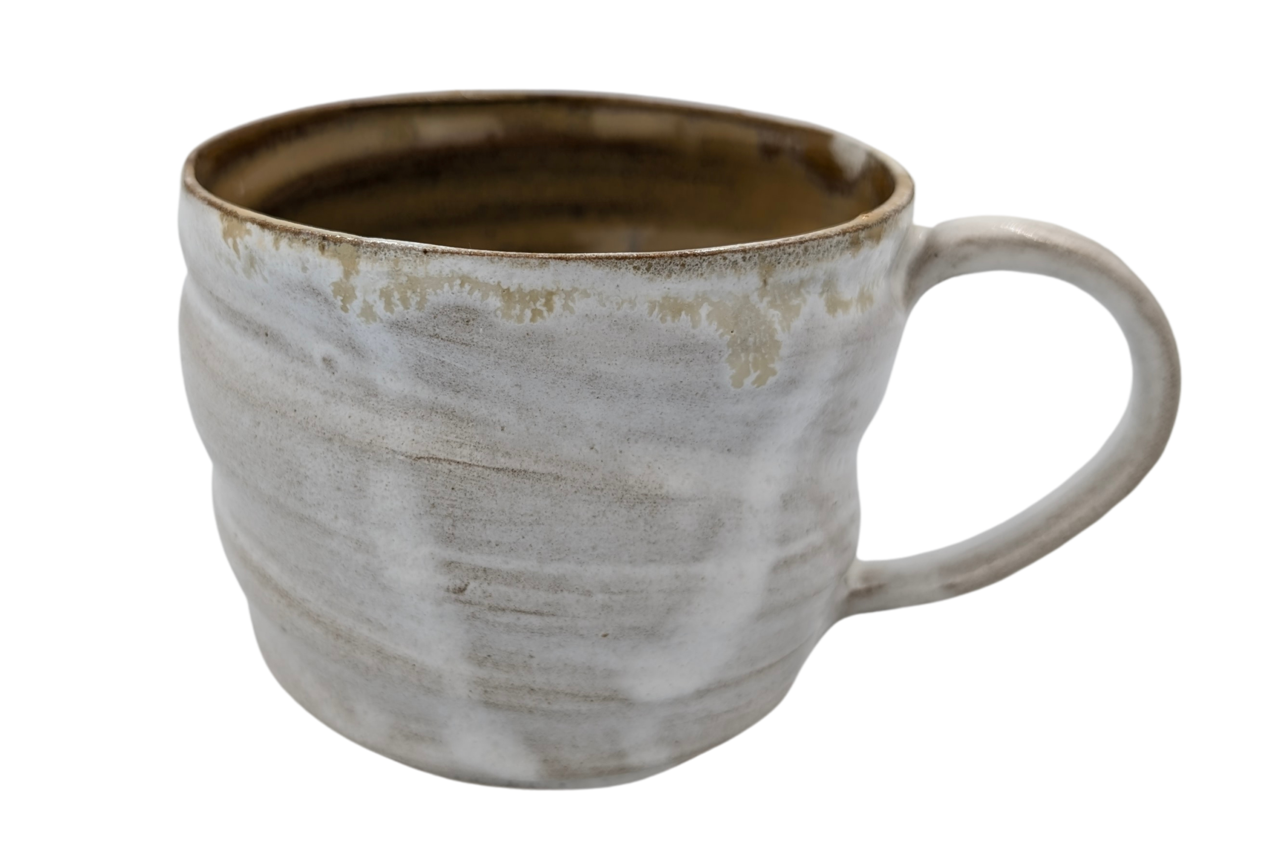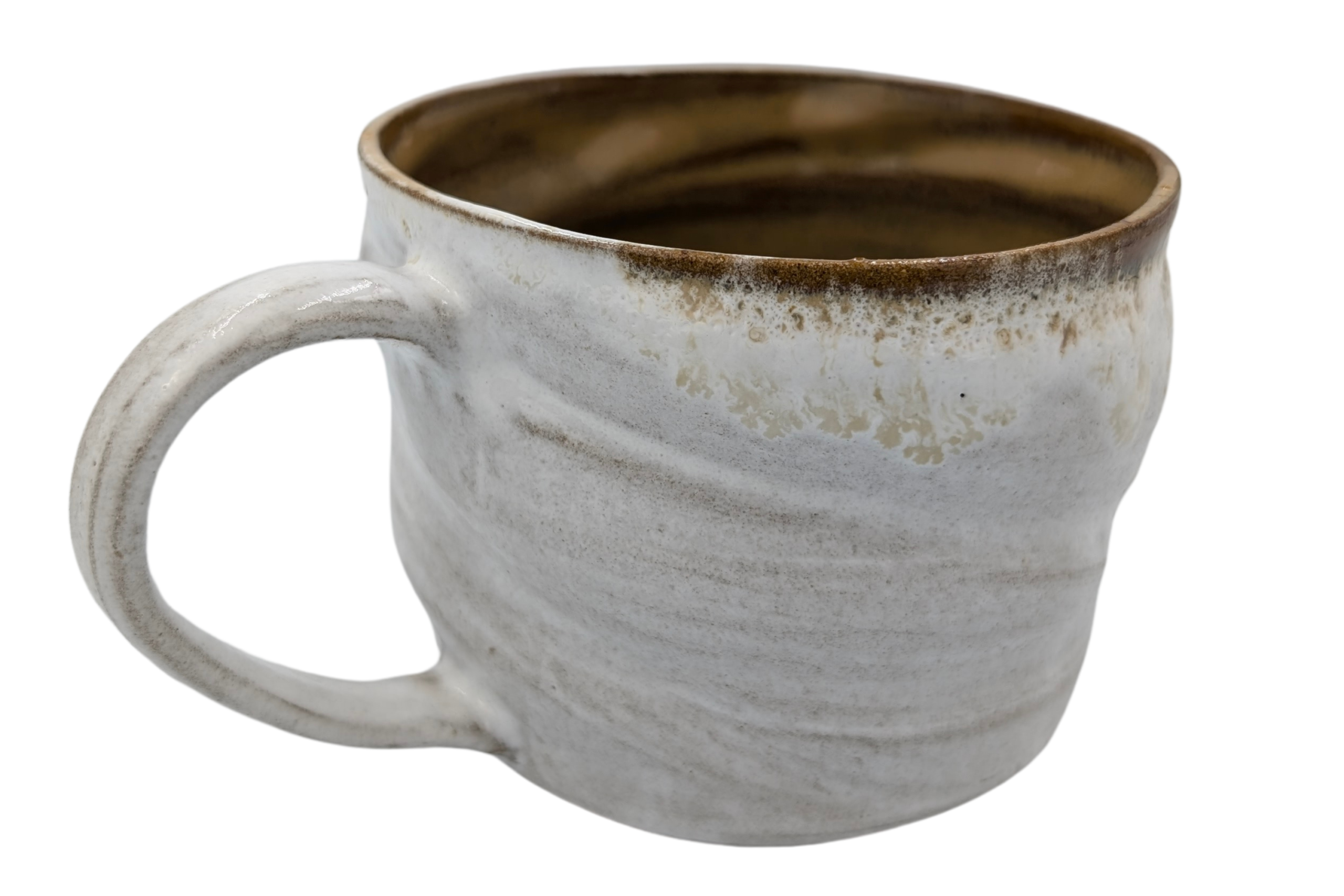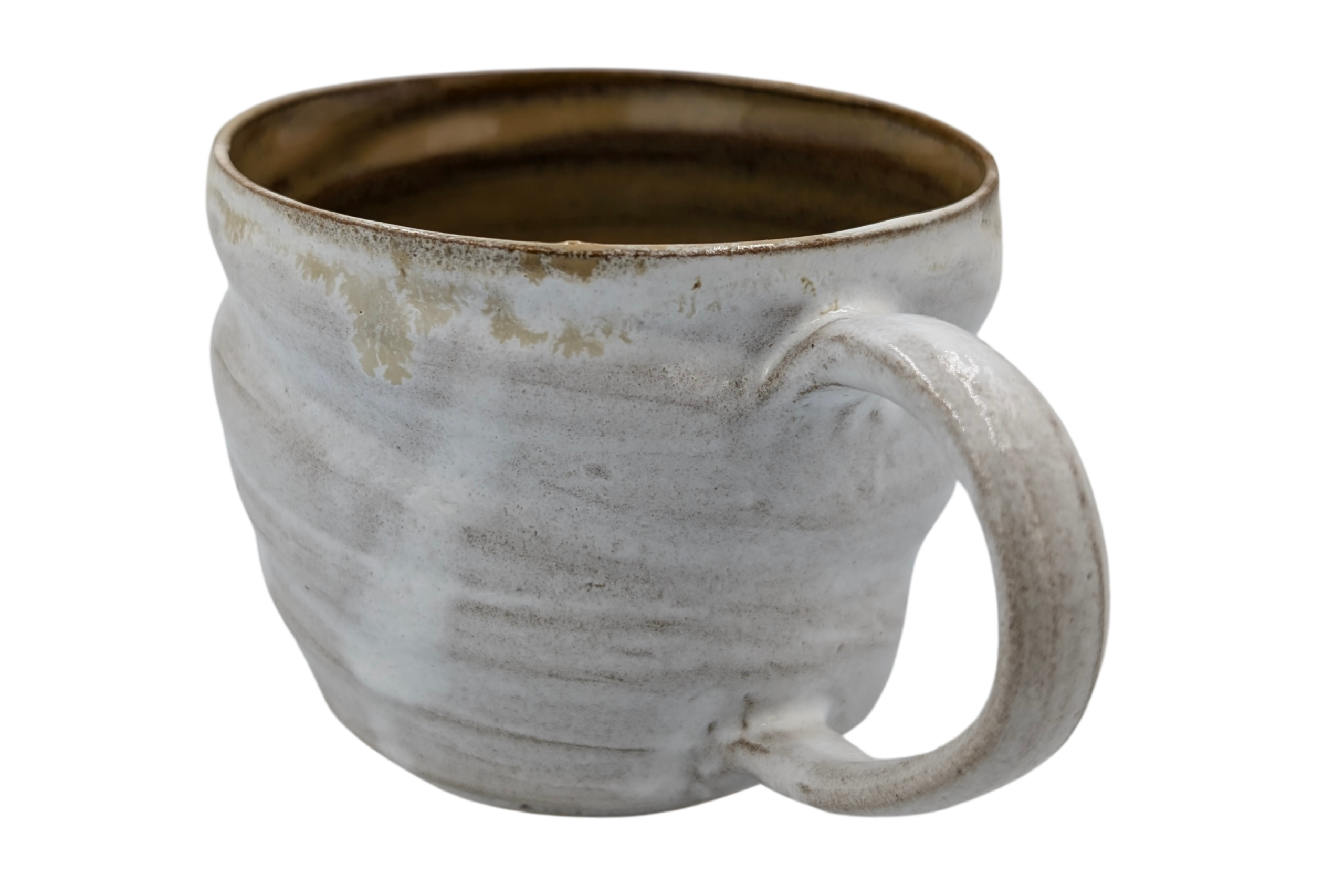 Kubek wykonany ręcznie na kole garncarskim z wysokiej jakości masy ceramicznej. Naczynie zostało wypalone w temperaturze ponad 1200 °C. Jest bezpieczne do kontaktu z żywnością, może być używane w kuchence mikrofalowej oraz myte w zmywarce, choć zalecam mycie ręcznie, aby uniknąć ewentualnych uszkodzeń mechanicznych np. obtłuczonych rantów.