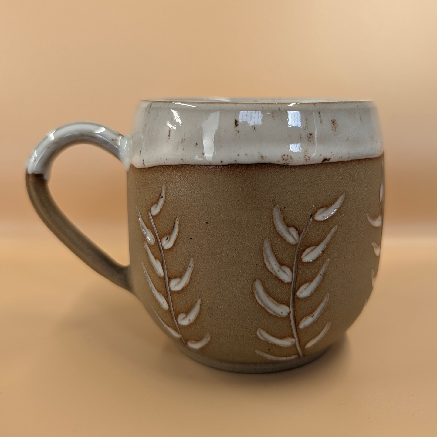 Kubek wykonany ręcznie na kole garncarskim z wysokiej jakości masy ceramicznej. Naczynie zostało wypalone w temperaturze ponad 1200 °C. Jest bezpieczne do kontaktu z żywnością, może być używane w kuchence mikrofalowej oraz myte w zmywarce, choć zalecam mycie ręcznie, aby uniknąć ewentualnych uszkodzeń mechanicznych np. obtłuczonych rantów.