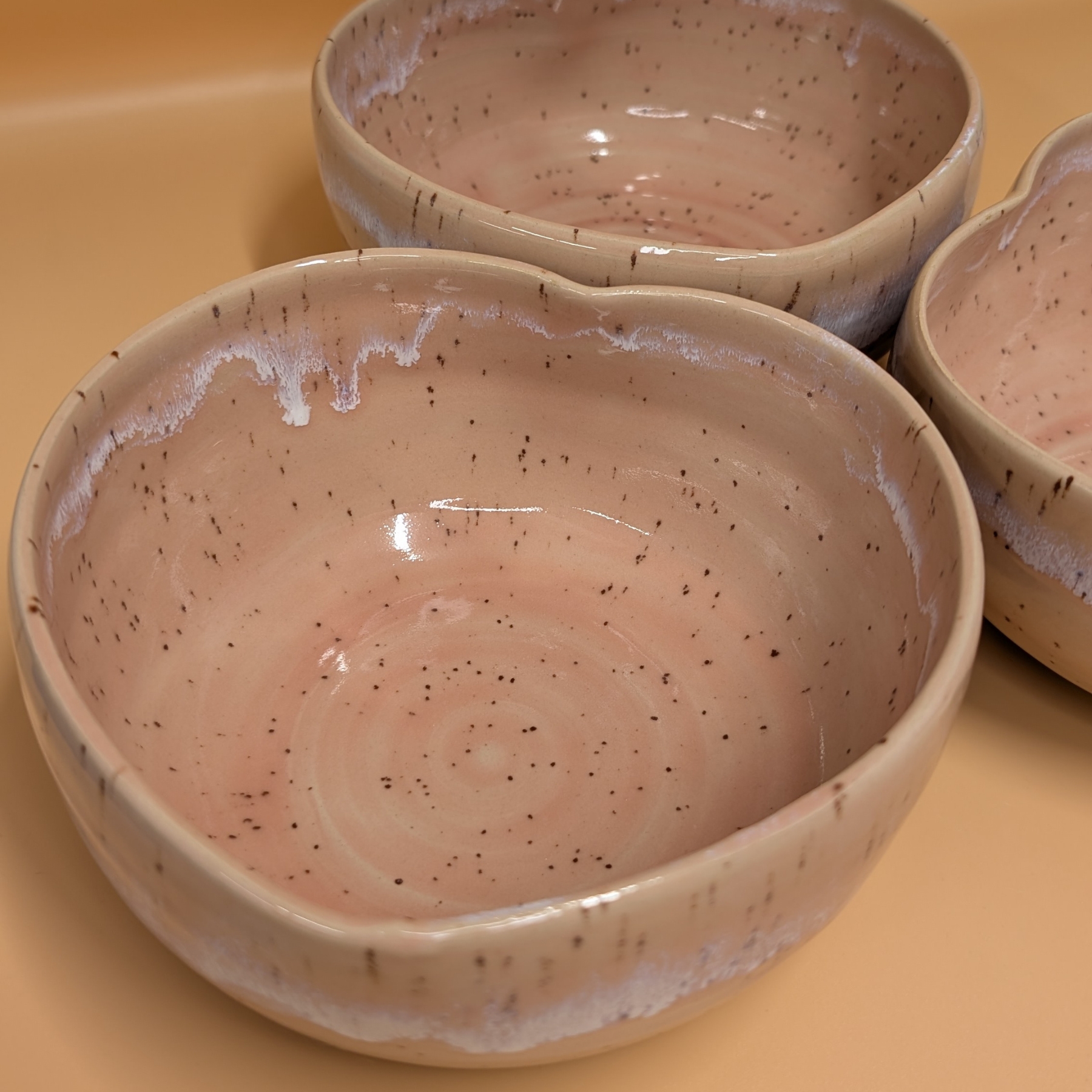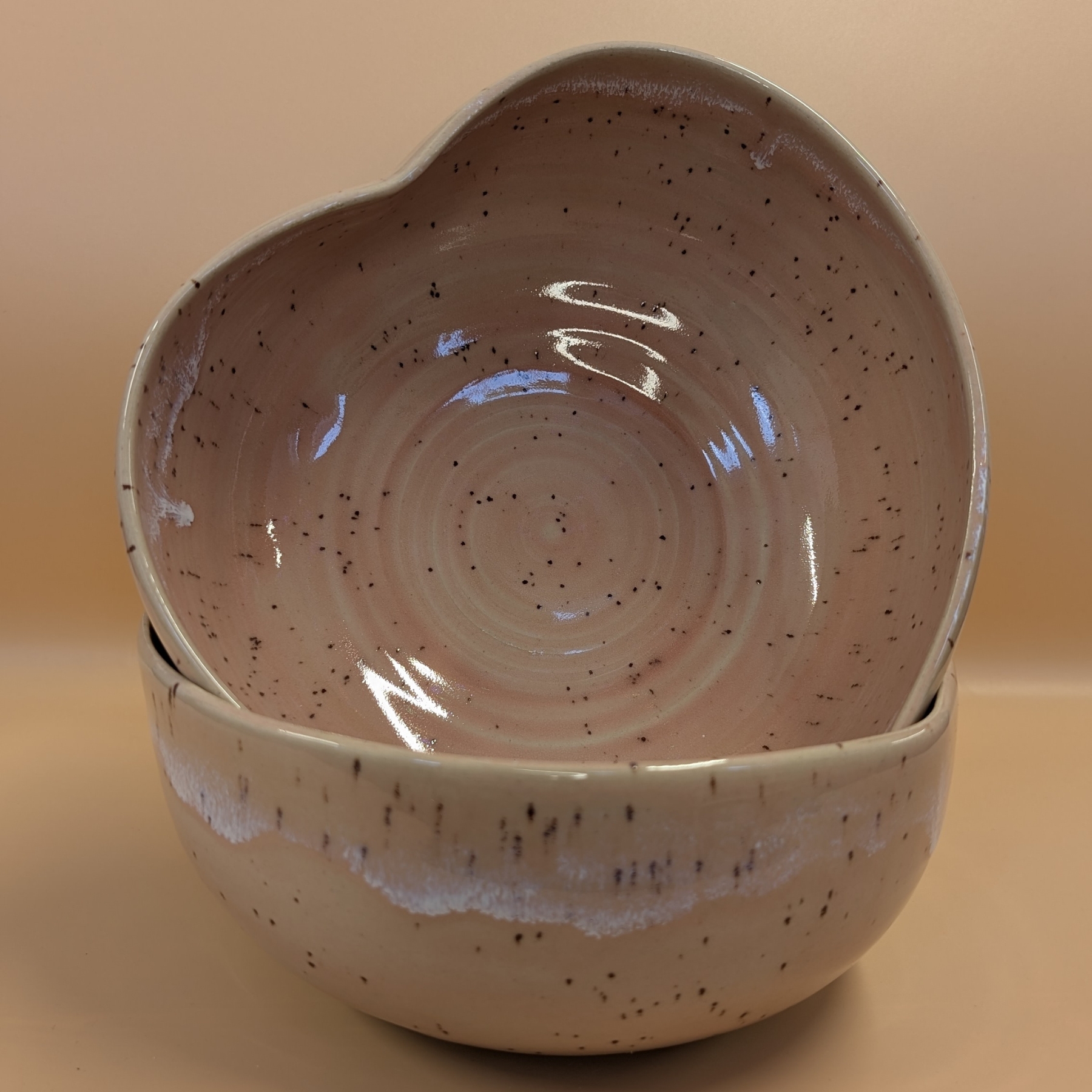 Miska wykonana ręcznie na kole garncarskim z wysokiej jakości masy ceramicznej. Naczynie zostało wypalone w temperaturze ponad 1200 °C. Jest bezpieczne do kontaktu z żywnością, może być używane w kuchence mikrofalowej oraz myte w zmywarce, choć zalecam mycie ręcznie, aby uniknąć ewentualnych uszkodzeń mechanicznych np. obtłuczonych rantów.