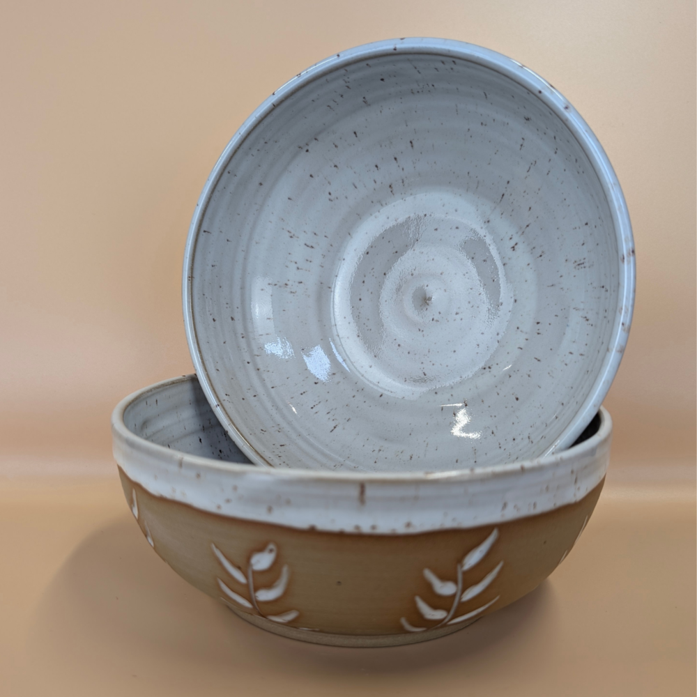 Miska wykonana ręcznie na kole garncarskim z wysokiej jakości masy ceramicznej. Naczynie zostało wypalone w temperaturze ponad 1200 °C. Jest bezpieczne do kontaktu z żywnością, może być używane w kuchence mikrofalowej oraz myte w zmywarce, choć zalecam mycie ręcznie, aby uniknąć ewentualnych uszkodzeń mechanicznych np. obtłuczonych rantów.