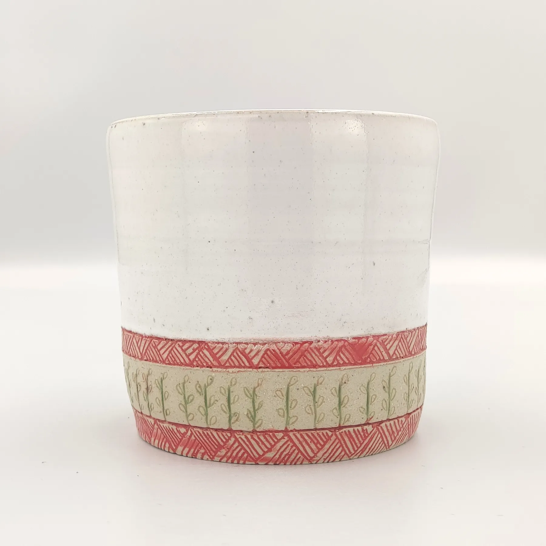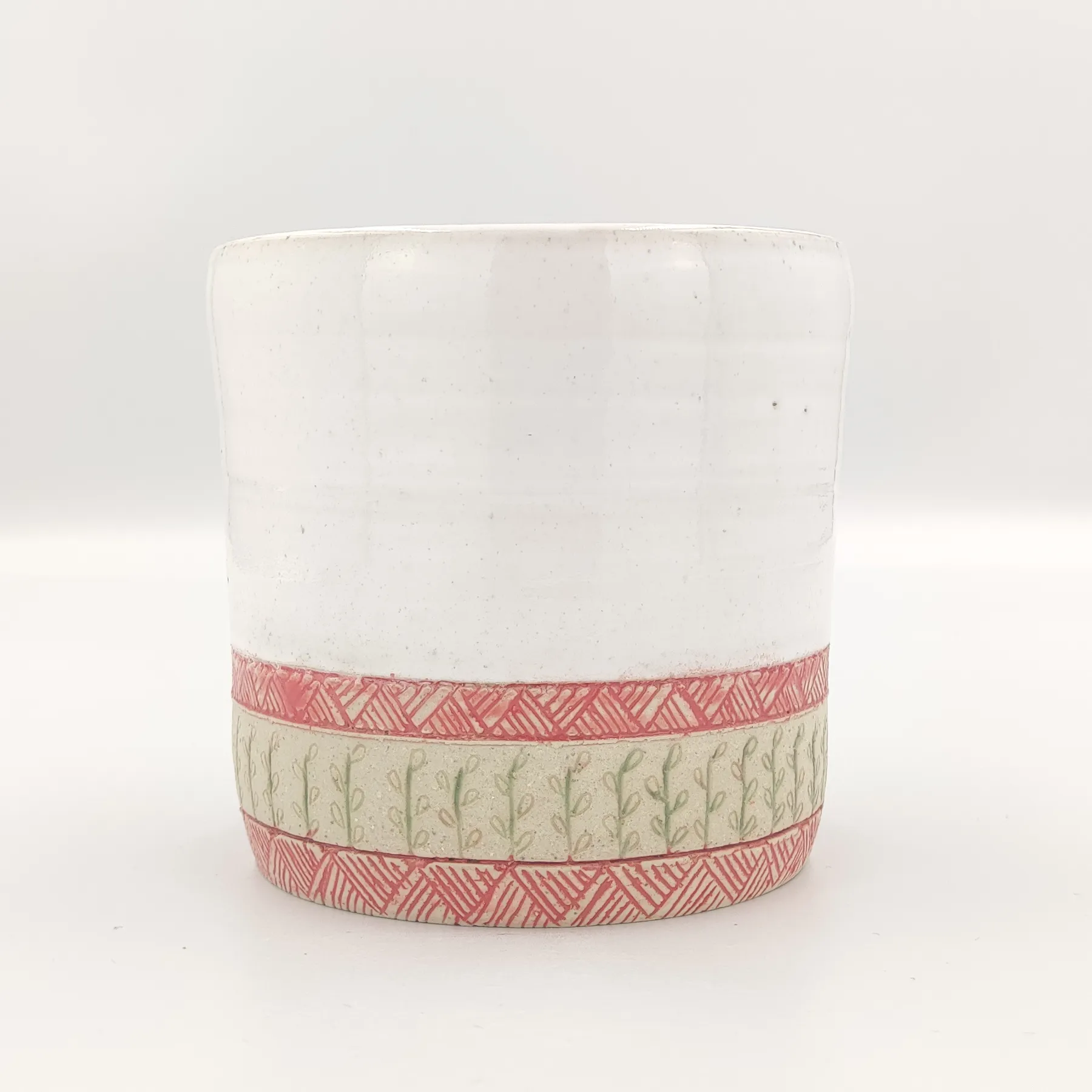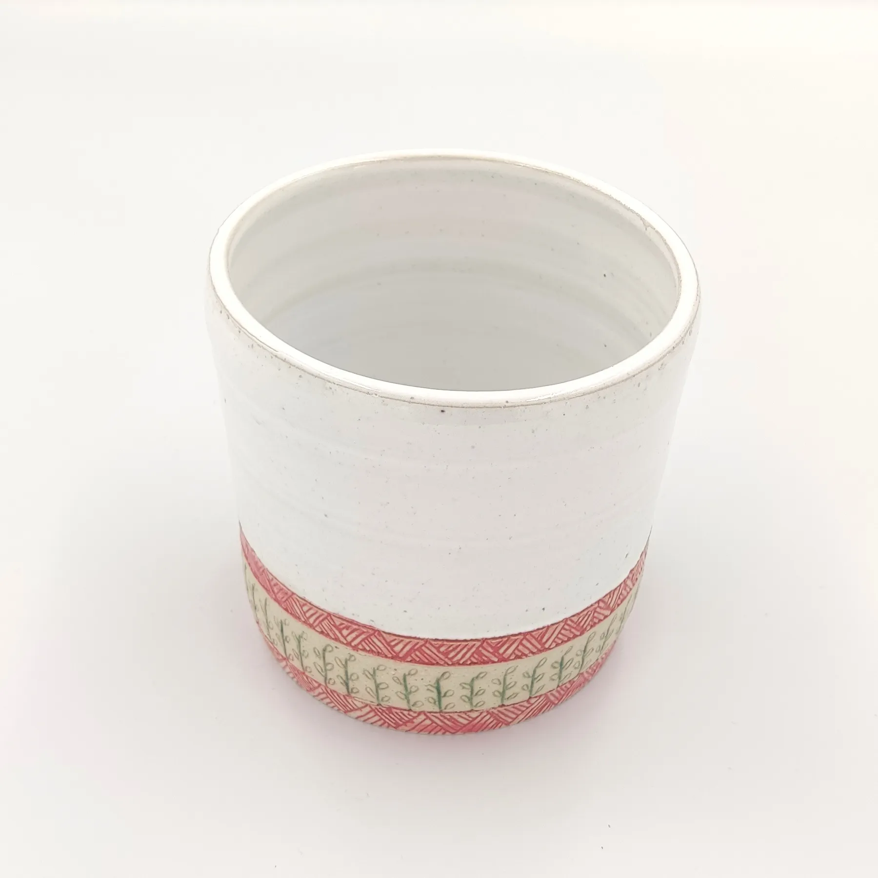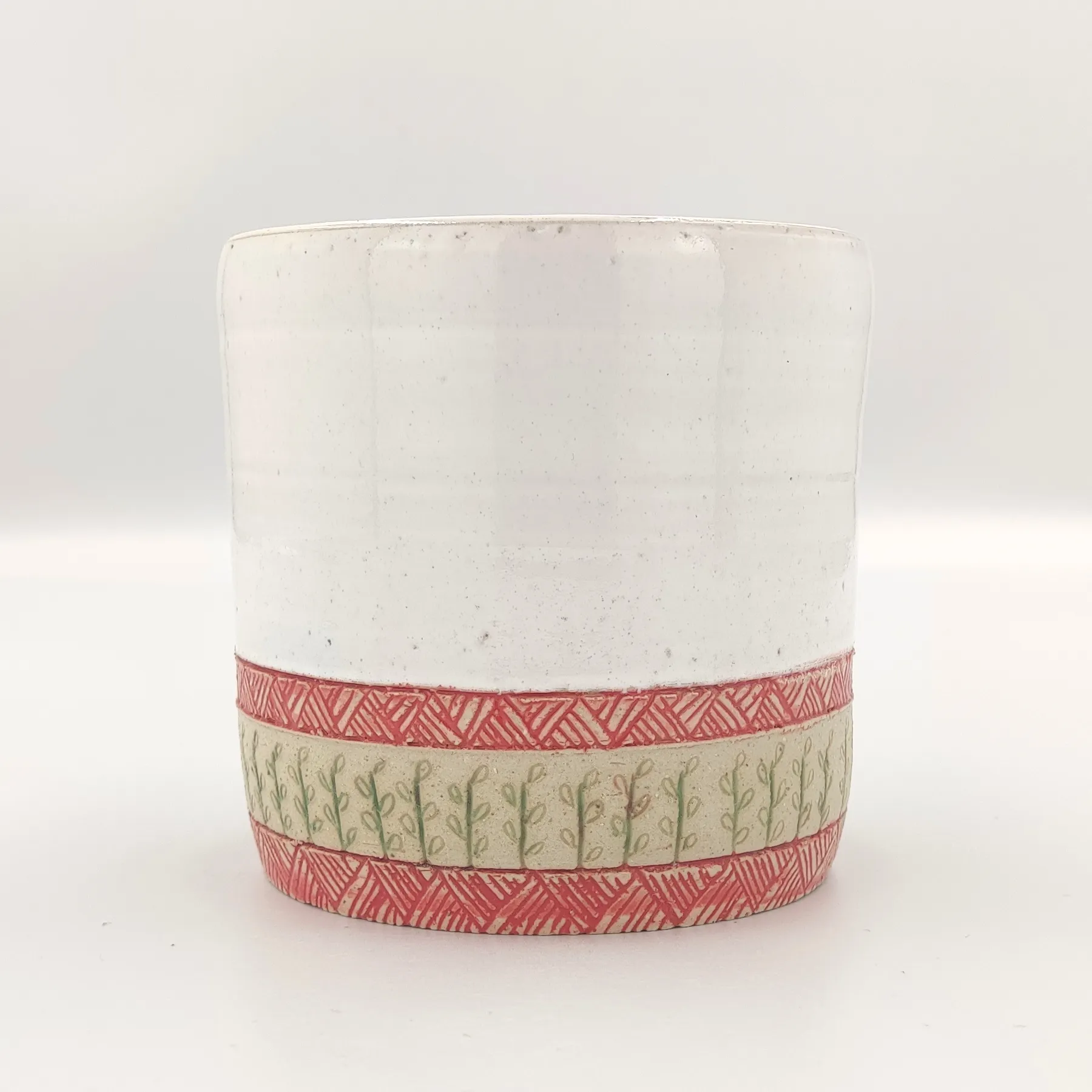 Pojemnik wykonany ręcznie na kole garncarskim z wysokiej jakości masy ceramicznej. Naczynie zostało wypalone w temperaturze ponad 1200 °C. Jest bezpieczne do kontaktu z żywnością, może być używane w kuchence mikrofalowej oraz myte w zmywarce, choć zalecam mycie ręcznie, aby uniknąć ewentualnych uszkodzeń mechanicznych np. obtłuczonych rantów.