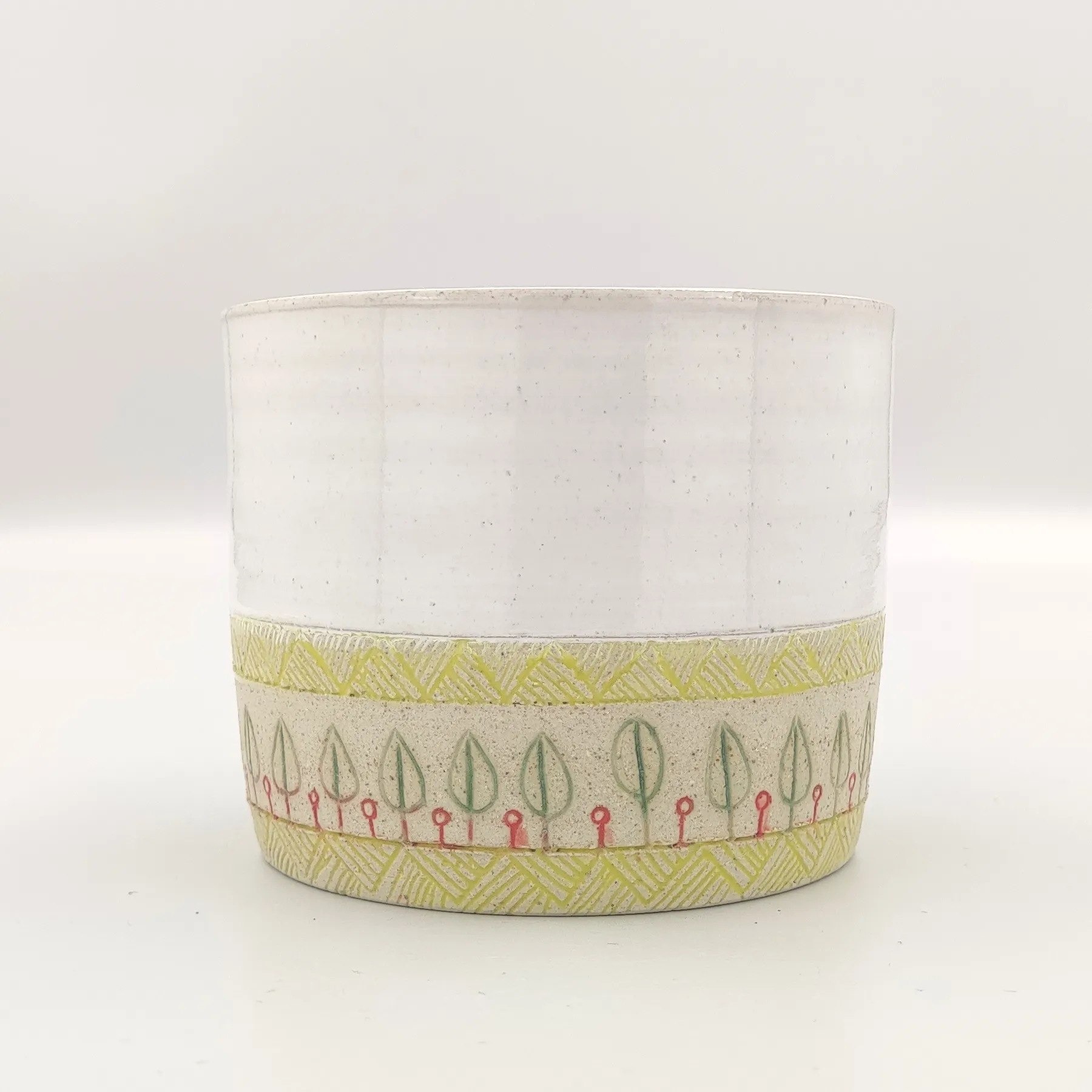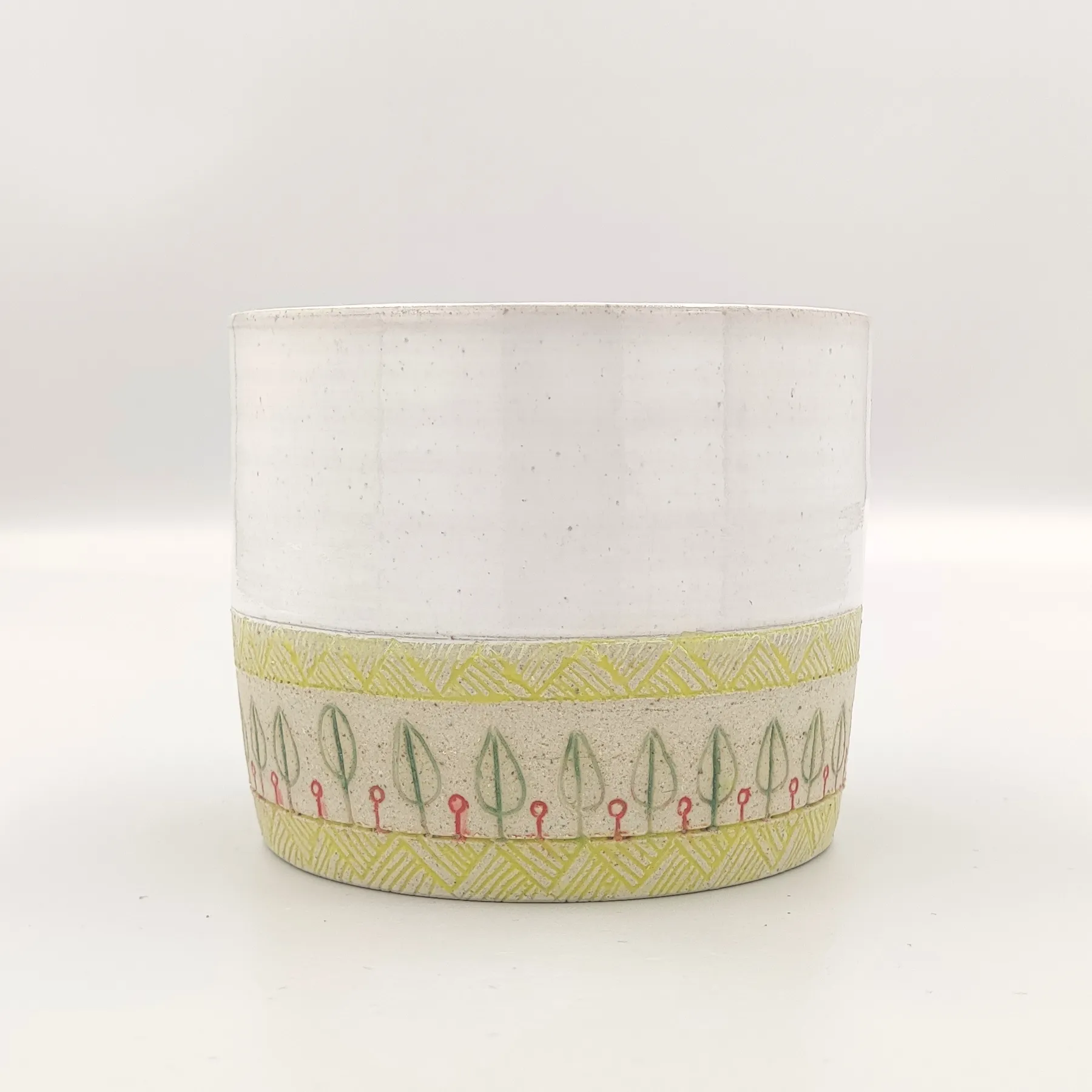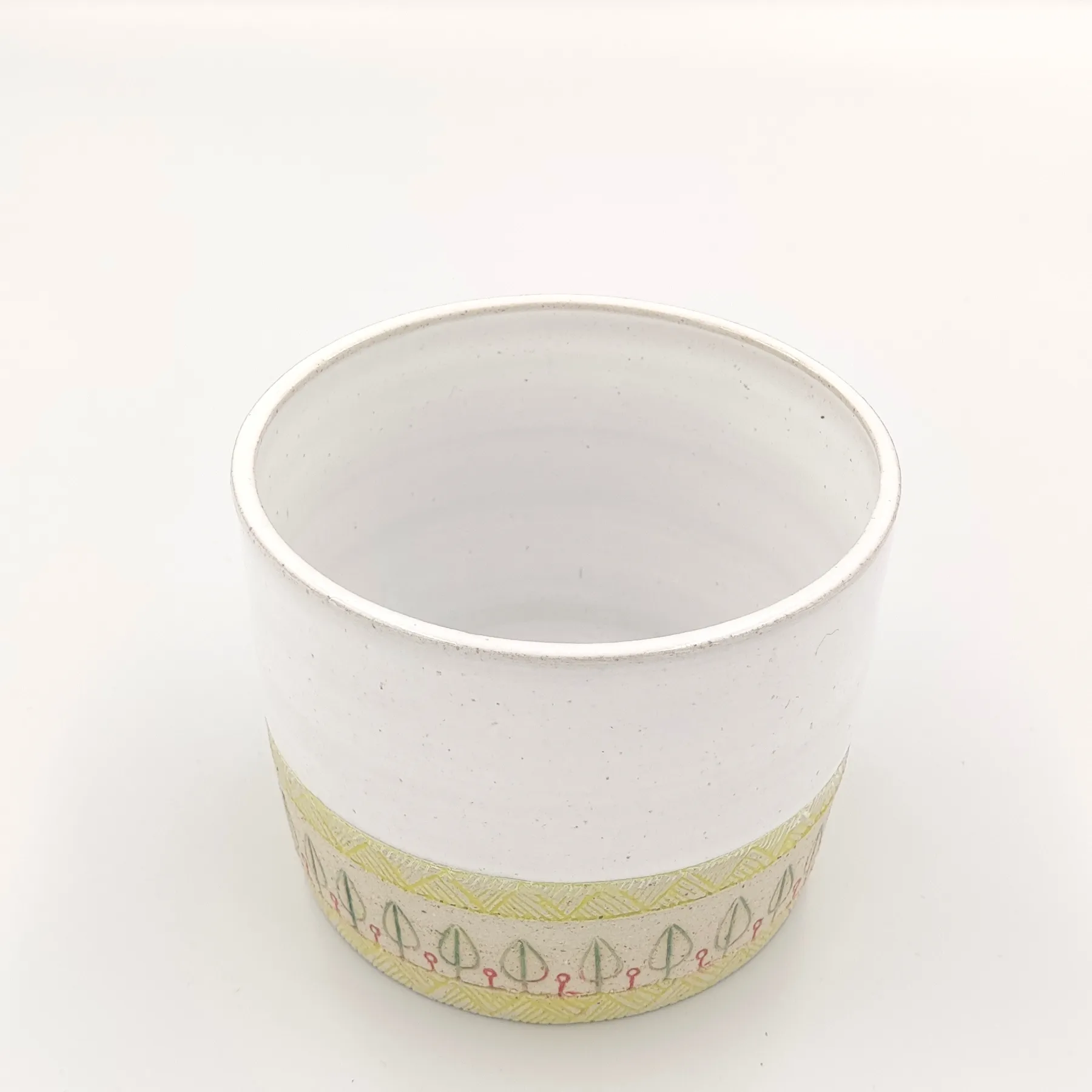 Pojemnik wykonany ręcznie na kole garncarskim z wysokiej jakości masy ceramicznej. Naczynie zostało wypalone w temperaturze ponad 1200 °C. Jest bezpieczne do kontaktu z żywnością, może być używane w kuchence mikrofalowej oraz myte w zmywarce, choć zalecam mycie ręcznie, aby uniknąć ewentualnych uszkodzeń mechanicznych np. obtłuczonych rantów.