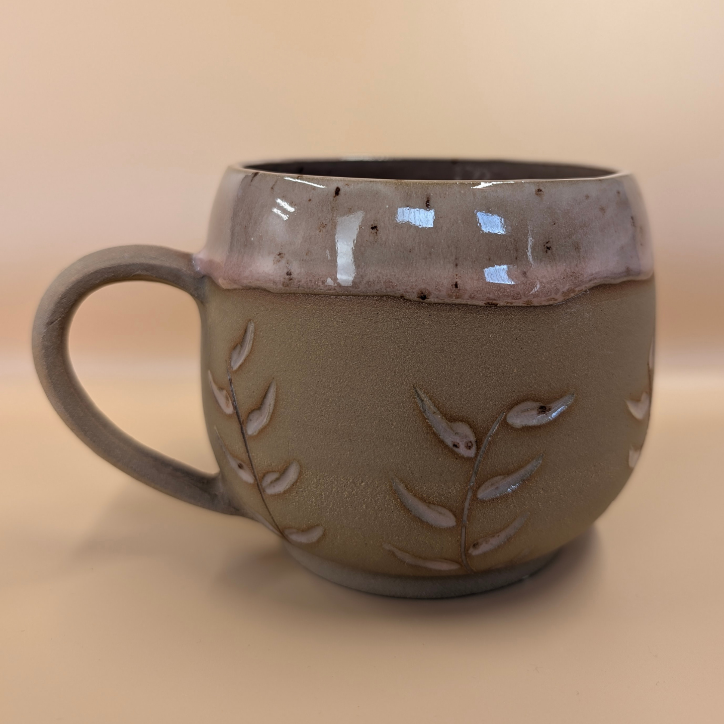 Kubek wykonany ręcznie na kole garncarskim z wysokiej jakości masy ceramicznej. Naczynie zostało wypalone w temperaturze ponad 1200 °C. Jest bezpieczne do kontaktu z żywnością, może być używane w kuchence mikrofalowej oraz myte w zmywarce, choć zalecam mycie ręcznie, aby uniknąć ewentualnych uszkodzeń mechanicznych np. obtłuczonych rantów.